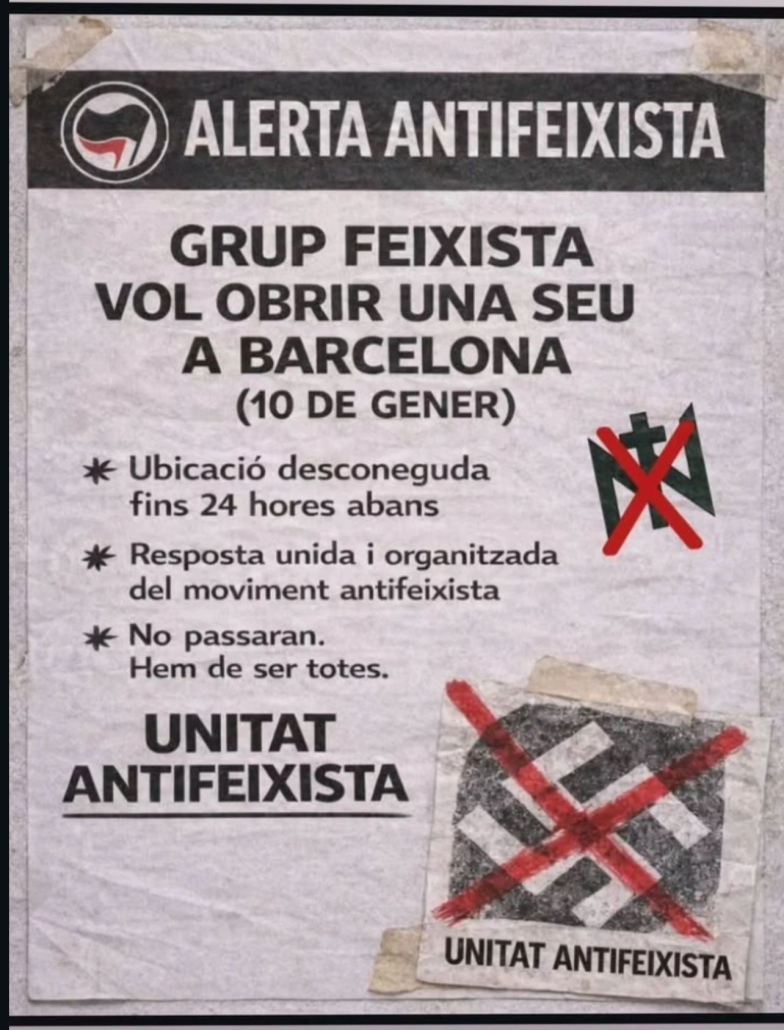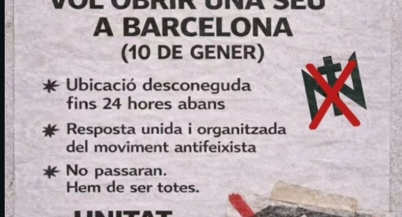 Este sábado 10 de enero, a las 18h, el grupo fascista Núcleo Nacional (NN) pretende abrir una nueva sede en Barcelona. El movimiento obrero y la juventud tenemos que organizarnos e impedir esta inauguración, y en el proceso demostrar a estos energúmenos y a la reacción en general, cuál es la verdadera correlación de fuerzas en la sociedad. ¡No pasarán!