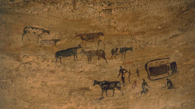 Arte rupestre en Tassili n’Ajjer (Argelia), donde se representan escenas de pastura.
